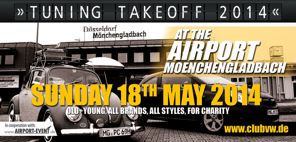 Nach dem großen Erfolg unseres ersten gemeinsamen Treffen, geht es nun in die zweite Runde : am 18.Mai 2014 starten wir zusammen mit der OPEL-Scene MG und der Airport Event unser nächstes markenoffenes Motorsporttreffen auf dem Gelände des Flughafen in Mönchengladbach. | |